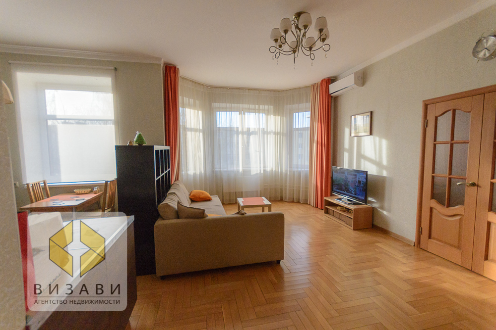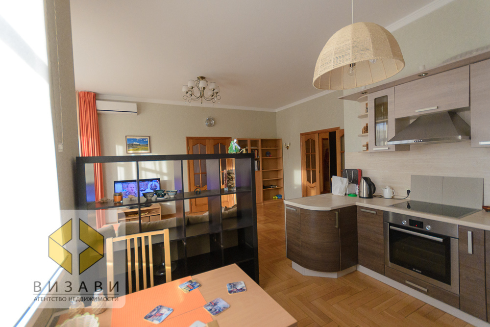 В квартире сделан качественный ремонт, установлен кондиционер, оборудована гардеробная, в спальне выход на большую застекленную лоджию. Квартира представляет собой интересно спланированное пространство: гостиная объединена с кухней и имеет зональное разделение. В кухне встроенная мебель, в гостиной окно эркер, угловой диван, рабочая зона, пол-паркетная доска. В спальне два световых проема, выход на большую утепленную лоджию. Совмещённый санузел. Большая прихожая с гардеробной. Все окна кварты выходят во двор, за счет чего, в квартире очень тихо даже при открытых окнах.